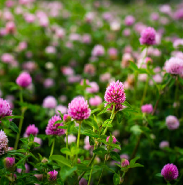 - Red Clover - Red Clover has been found to reduce inflammation and stimulate the production of proteins near the hair follicles. Biochanin A, found in red clover, prevents the shrinking of the hair follicles and improves the thickness of the hair. Red Clover is also a natural DHT blocker.